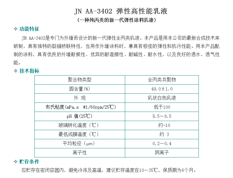 广州骏能化工 丙烯酸乳液 JN AA-3402 弹性高性能乳液 (一种纯丙类的新一代弹性涂料乳液)