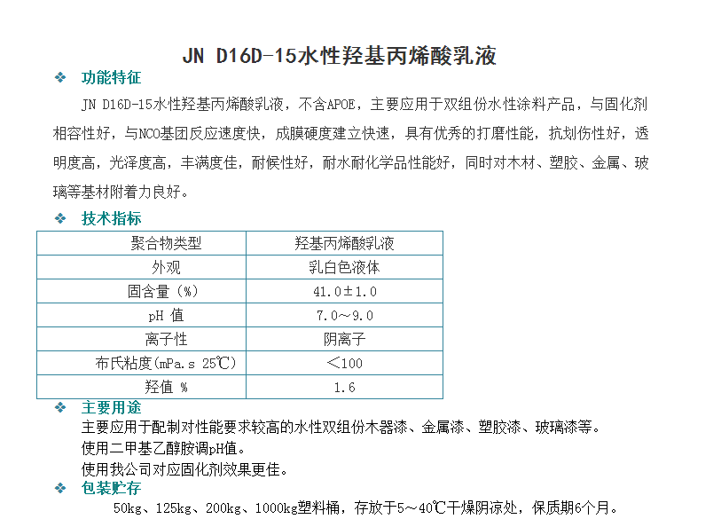 广州骏能化工 丙烯酸乳液 JN D16D-15水性羟基丙烯酸乳液