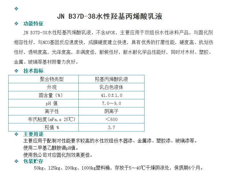 广州骏能化工 丙烯酸乳液 JN B37D-38水性羟基丙烯酸乳液