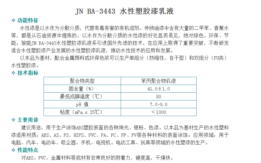 广州骏能化工 丙烯酸乳液 JN BA-3443 水性塑胶漆乳液