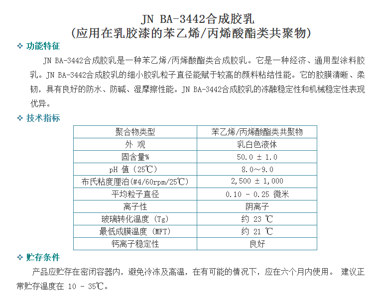 广州骏能化工 丙烯酸乳液 JN BA-3442合成胶乳 (应用在乳胶漆的苯乙烯/丙烯酸酯类共聚物)
