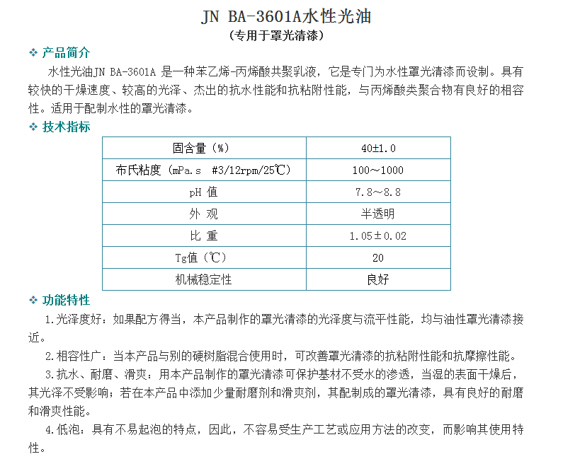 广州骏能化工 丙烯酸乳液 JN BA-3601A水性光油 (专用于罩光清漆)
