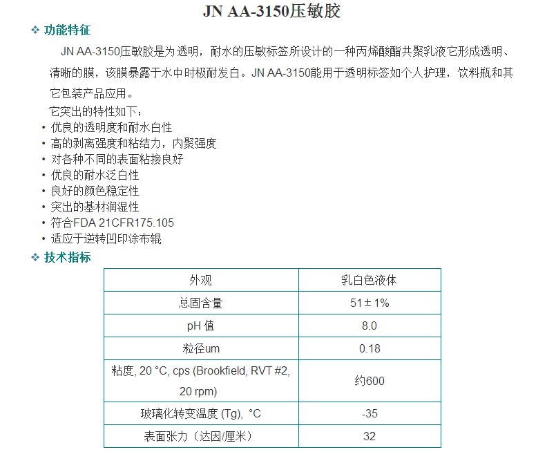 广州骏能化工 丙烯酸乳液 JN AA-3150压敏胶