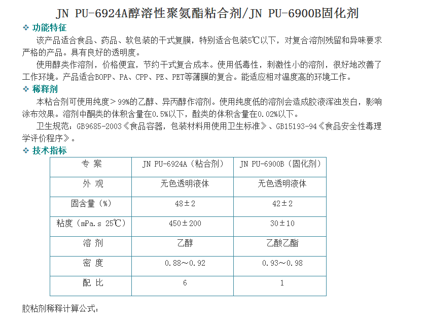 广州骏能化工 溶剂型聚氨酯 JN PU-6924A醇溶性聚氨酯粘合剂/JN PU-6900B固化剂