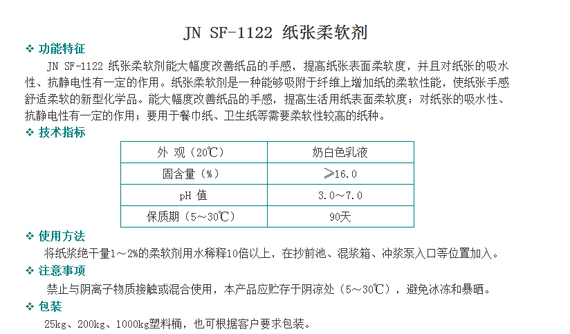 广州骏能化工 功能性助剂 JN SF-1122 纸张柔软剂