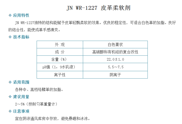 广州骏能化工 功能性助剂 JN WR-1227 皮革柔软剂
