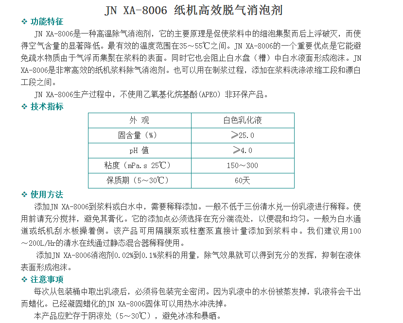广州骏能化工 功能性助剂 JN XA-8006 纸机高效脱气消泡剂