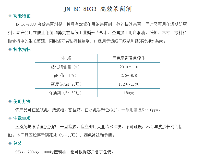 广州骏能化工 功能性助剂 JN BC-8033 高效杀菌剂