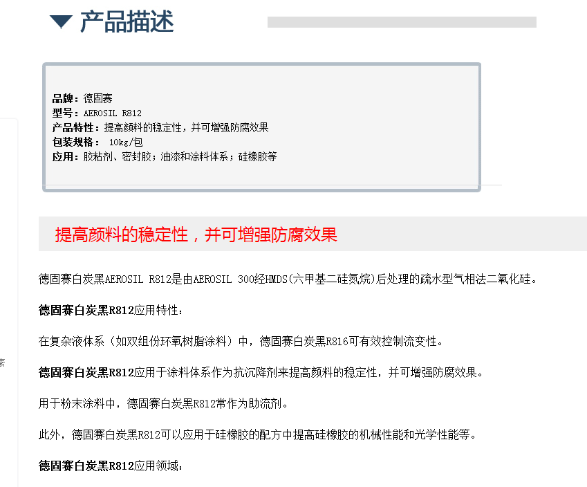 德国赢创德固赛白炭黑AEROSIL R812