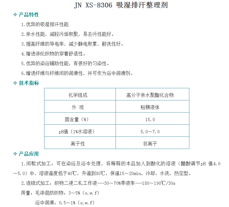 广州骏能化工 功能性助剂 JN XS-8306 吸湿排汗整理剂
