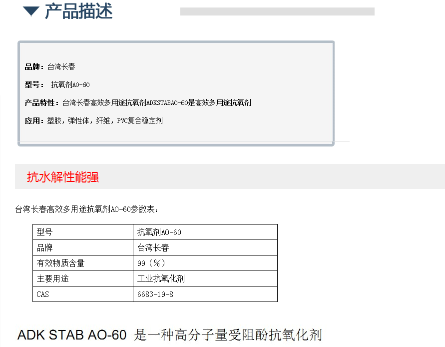 台湾长春高效多用途抗氧剂ADKSTABAO-60