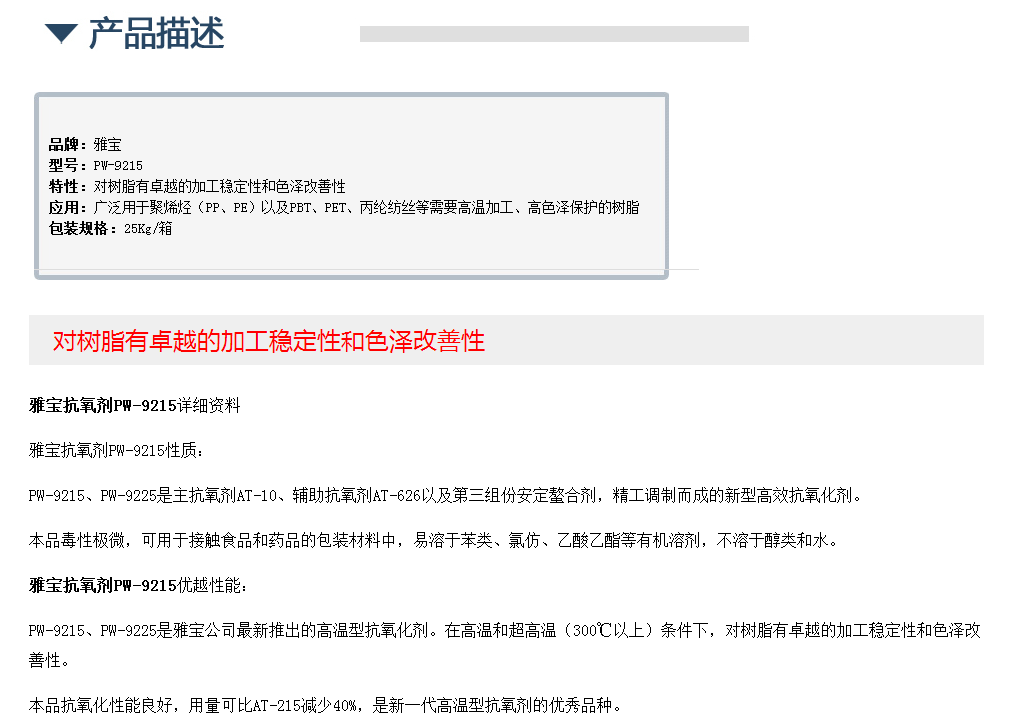美国雅宝抗氧剂PW-9215
