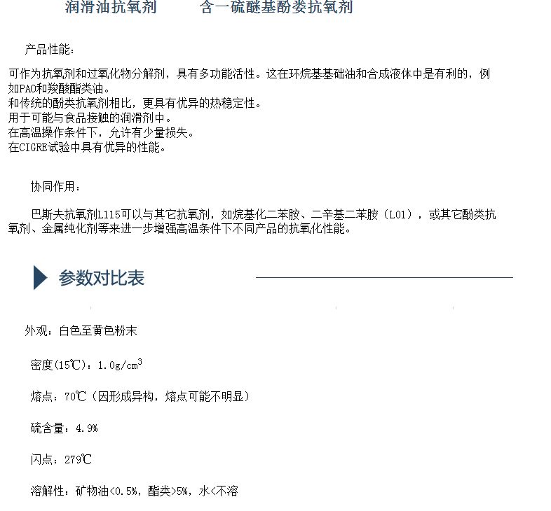 巴斯夫抗氧剂L115 润滑油抗氧剂 BASF IRGANOX L115