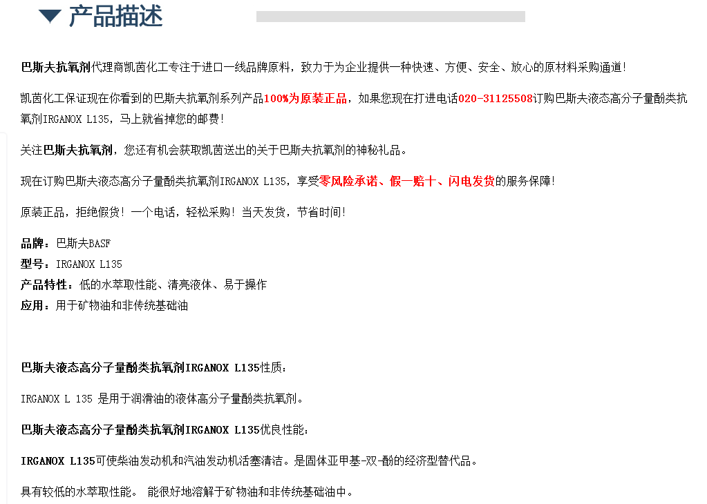 德国巴斯夫BASF液态高分子量酚类抗氧剂IRGANOX L135